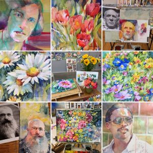March 25 & 26 “Florals & Faces” watercolor workshop at the Bryan Gallery in Jeffersonville, VT. Daily 10 – 4. Join me for a fun-filled two day watercolor workshop where we will tackle two different subjects. Both subjects, florals and faces will be handled in a bold and unique way. We will cover basic watercolor approaches as well as negative painting, hard and soft edges, value, scraping, splattering, brush handling plus other techniques. Put a little color into the tail end of the month of March and come paint with bravado.