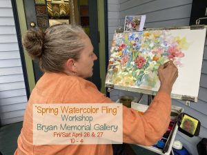 Join me at the Bryan Memorial Gallery in Jeffersonville on Friday and Saturday April 26 & 27 for a fun-filled, two-day watercolor workshop where we will immerse ourselves in the colorful world of petals and pigments. Florals are a tireless subject that can be captured on paper in numerous ways. The workshop will cover several watercolor applications, including negative painting, hard and soft edges, value, scraping, splattering, brush handling plus many other techniques. I will demonstrate my approach to painting in a relaxed setting with individual attention and a daily “show and tell.” Please register directly with the Gallery by clicking the link here.
