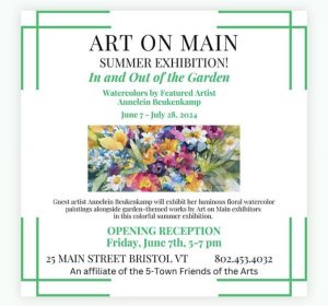 Burlington, VT – Beginning May 5th, Frog Hollow Craft Association and Gallery will exhibit “EUFLORIA”, a show of watercolors and vases featuring recent work by painter Annelein Beukenkamp and glass blower Janet Zug, who are both Gallery Members.The show, which includes floral watercolors and glass vases, showcases color and translucency through fluid materials. Annelein’s work has been described as bold, bright, joyful and happy and features a wide variety of flowers as inspiration. The layers of colors and numerous glazes are a part of her technique that achieves glow and depth placing her blossoms in a rich environment. The range of values enhance the play of lights and darks giving the viewer a full spectrum of beautiful color to observe in these floral portraits. Bouquets and flower gardens enrich our lives with natural beauty and Annelein strives to capture a moment in time when life is in full bloom. Her watercolors have been exhibited widely, won numerous awards and have been featured in several art publications. Annelein is also a popular workshop teacher and has provided inspiration to many artists over the years. Annelein will be in the gallery Saturday May 27 to conduct a demonstration, followed by a meet and greet where she will be available to answer any questions about her show. The show closes June 1st.